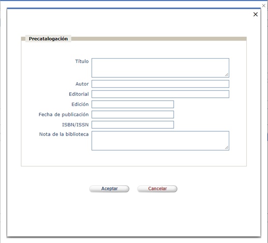 Si no recuperamos el registro que estamos buscando en ninguna de estas bases de datos, añadiremos una precatalogación.