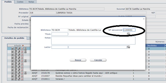 En el campo NÚMERO SECUENCIAL incluimos el número de la propuesta que queremos incorporar al pedido.