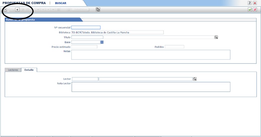 - Menú jerárquico de la izquierda > Adquisiciones > Propuestas de compra > Botón AÑADIR