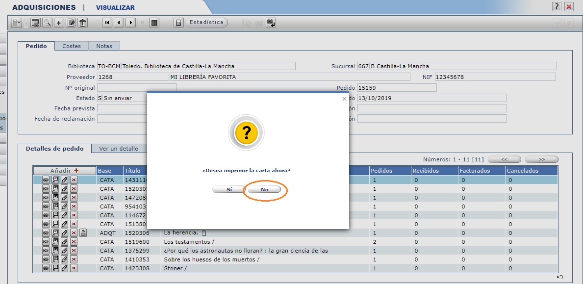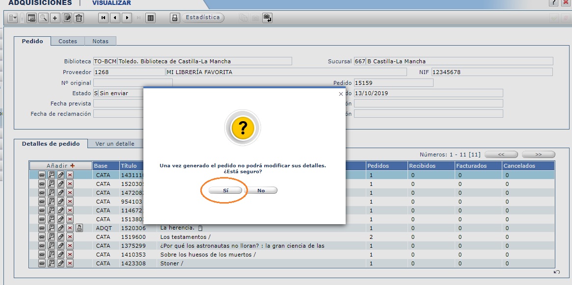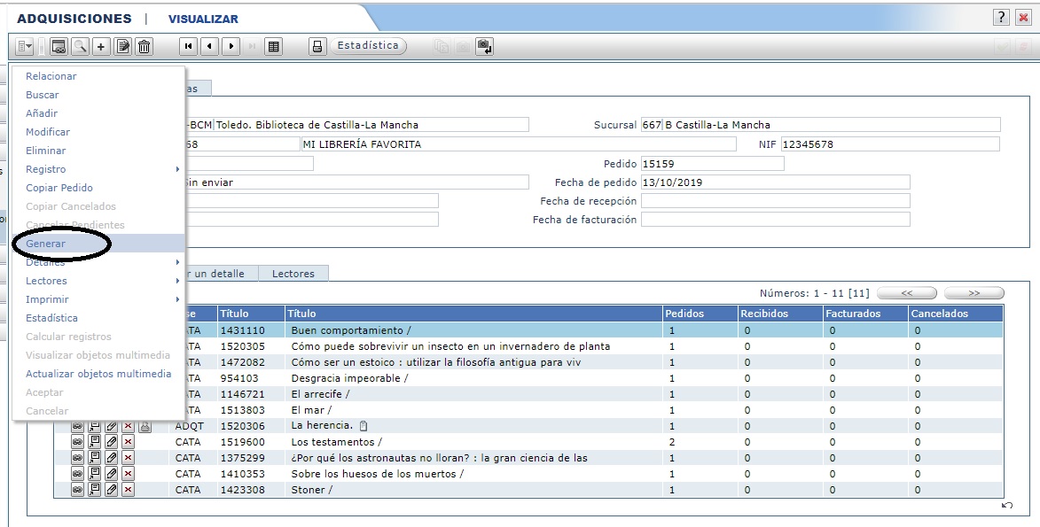 Una vez incluidos los títulos en el pedido, el siguiente paso es generarlo.